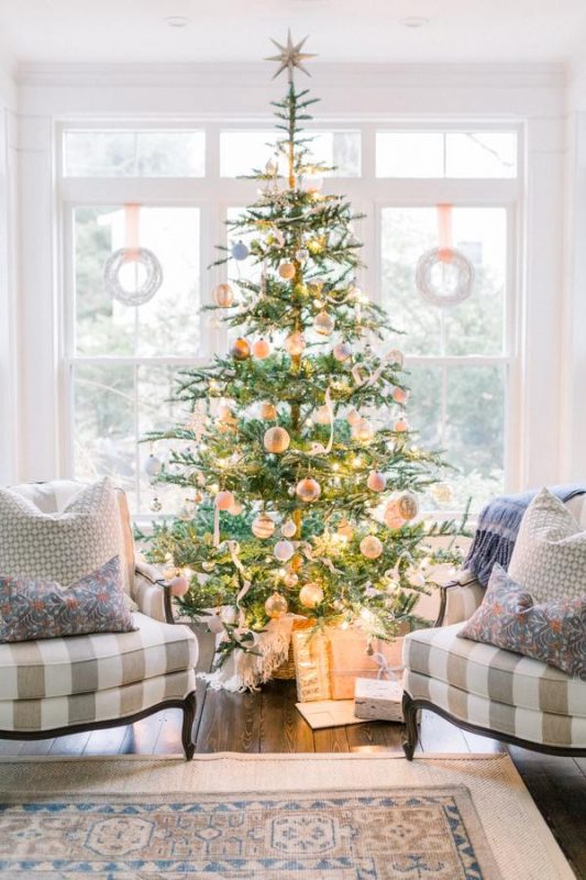 First and foremost — decide on your tree! This is the center point of Christmas decor, so the decisions you make here will help guide your other choices. First decision to make is to weigh out the options of a real or a faux tree. With a real tree, you get the delicious piney scent throughout your home, and acquiring the tree can turn into a fun tradition. However, a real tree sheds and is an occurred expense every year. A faux tree is a heavy initial investment, but you only have to make it once every 10 years (or so) and if you really splurge you can get it pre-lit, and that is a true luxury when decorating. Pro-tip — you might want to wait to get a faux tree after Christmas, the discounts are a present in and of themselves:)