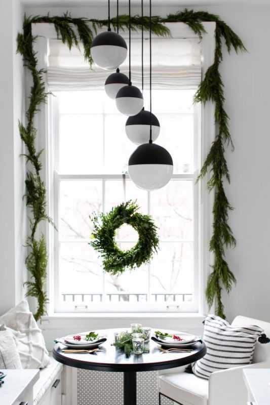 But garland is the real heavy hitter here. You can drape it, frame with it, cascade it — it all looks good. Garland can be an investment, so opt for one that you can adapt and dress up, and it will look good year after year!
