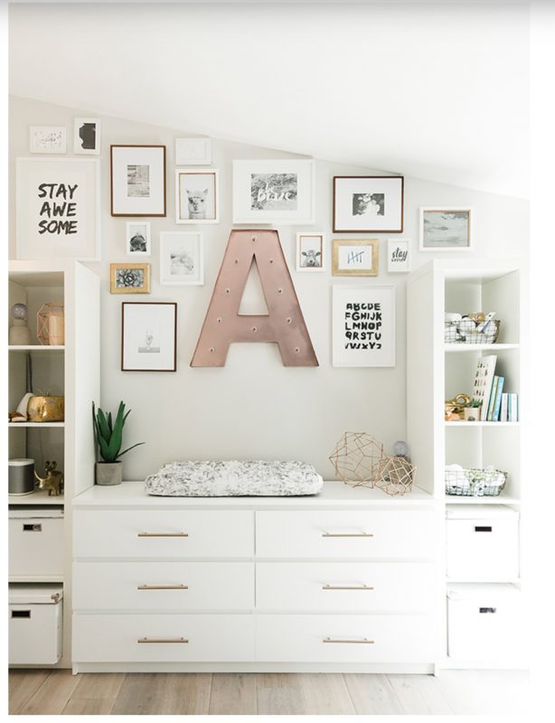 Go With Your Gut – There isn’t necessarily an art to hanging gallery walls, you just have to go with your gut. Forget about measuring distances between frames and go with what feels right, knowing that it’s okay to vary from frame-to-frame. Unless installing a grid wall, you should not feel limited to a specific spacing. Realistically, the more variation you have in terms of spacing and frame size, the easier your installation will be and you’ll end up with a more unique finished product.
