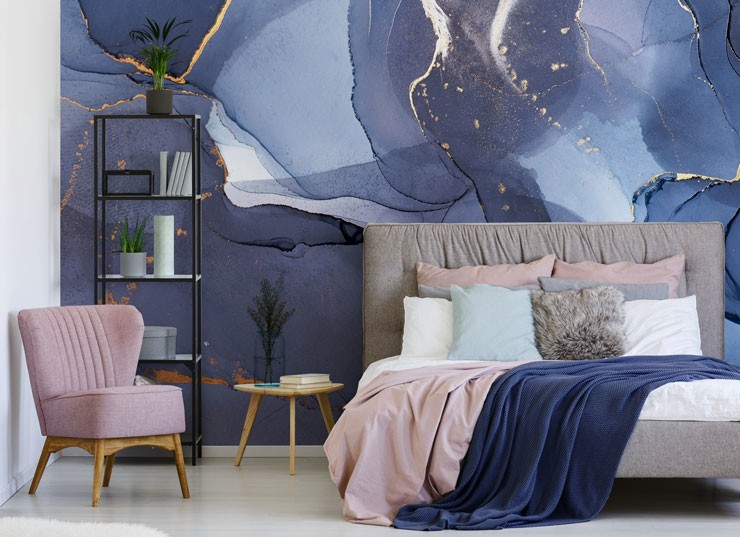 If you’re worried about your room looking one-dimensional, try a wallpaper like this stunning Blue Swirl Watercolour design for a bit of high-end charm.
