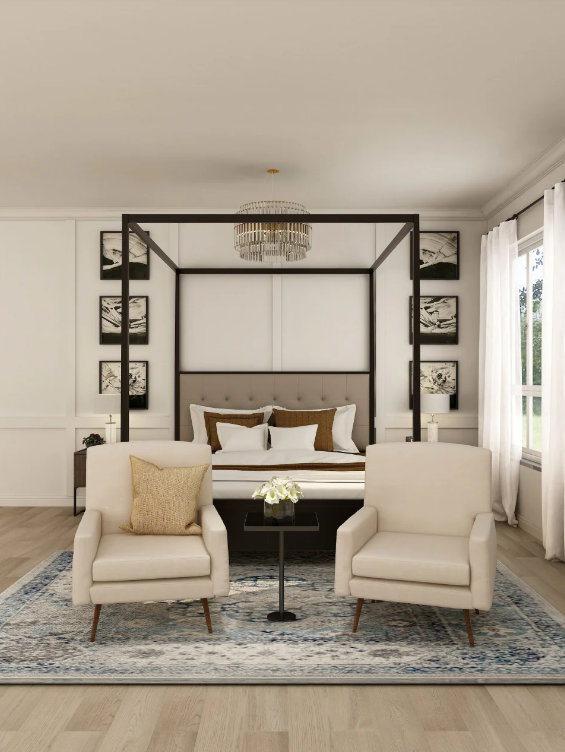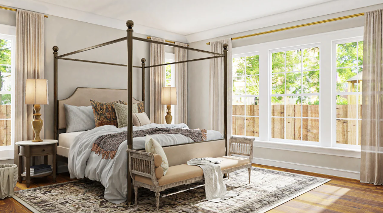 Combining modern with romantic style is a bit of an art form – you have to balance the clean lines of modern decor with a softer romantic feel. Look for beds with clean, straight lines or you can offset the softer look of a tufted headboard with modern nightstands, light fixtures and other decor elements. Four poster beds have made a comeback and there are plenty of modern, sleek options available.