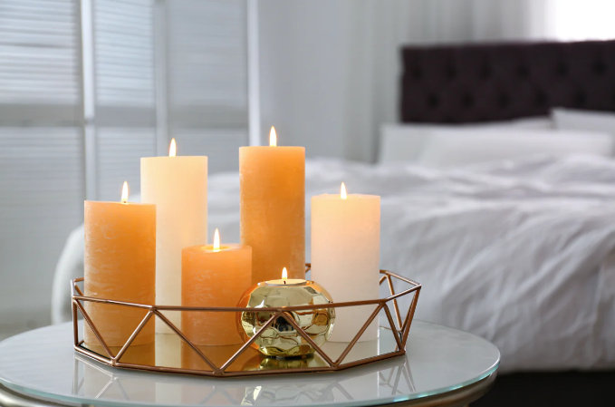 Not only are candles the epitome of romance, they also add a soft flickering light in the room. Nothing compares to real candles in our opinion, but a convenient way to add the allure of candles on a daily basis is by adding artificial candles with timers for some simplified, automated ambience!