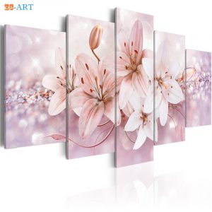 Blush Pink Purple Blue Brown Lilies Flowers Pritns Canvas Painting 5 Panel Pastel Floral Wall Art for Girls Room Home Decor