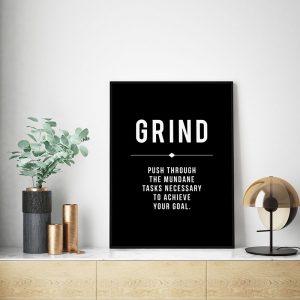 Be the first to review “Grind Definition Print, Modern Office Decor, Motivational Inspirational Quote, Entrepreneur Gift, Large Black Poster”