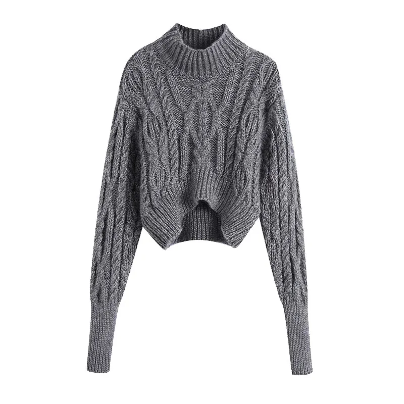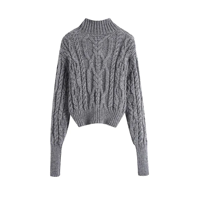 Be the first to review “Women 2020 Fashion Asymmetric Cropped Cable-knit Sweater Vintage High Neck Lantern Sleeve Female Pullovers Chic Tops”