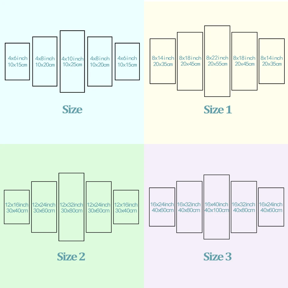 | Size (Inch) | 10×15 10×20 10x25cm, 20×35 20×45 20x55cm, 30×40 30×60 30x80cm, 40×60 40×80 40x100cm |