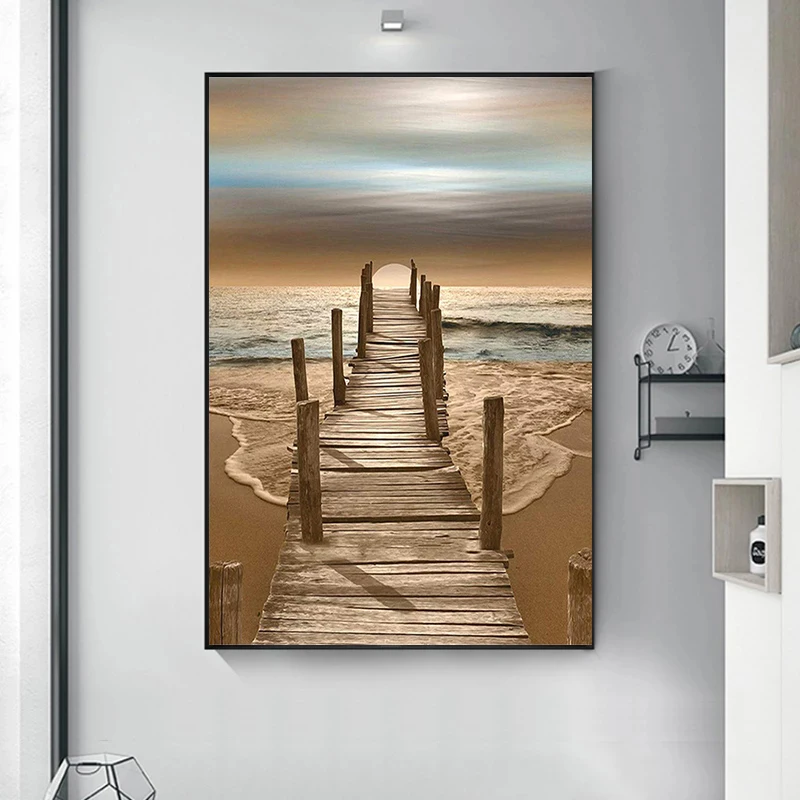 Be the first to review “Wooden Bridge Hall Sofa Connecting The Sea Canvas Painting Background Posters and Prints Wall Picture for Living Room Home Decor”
