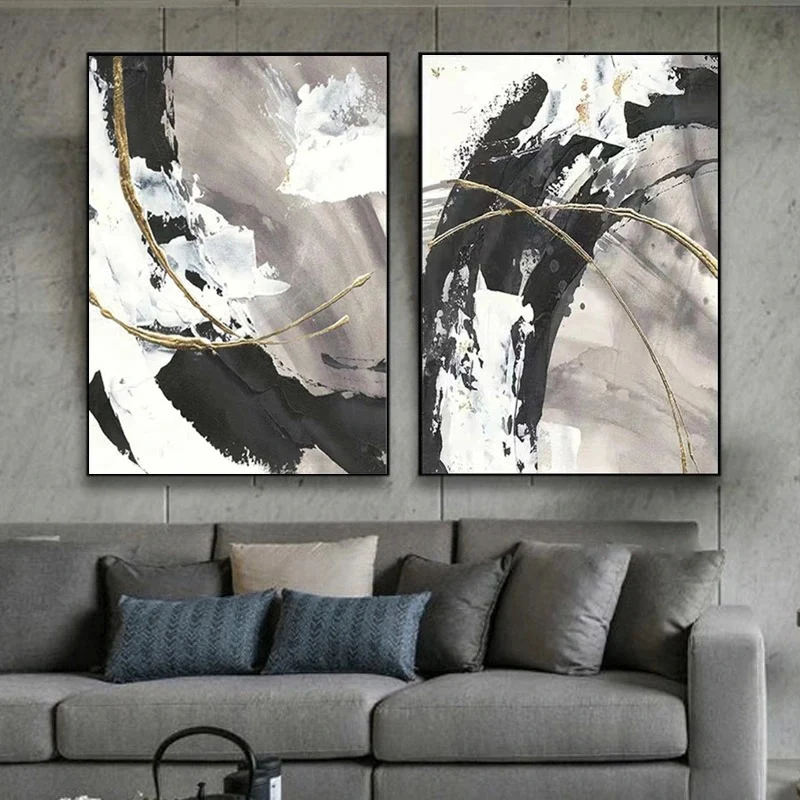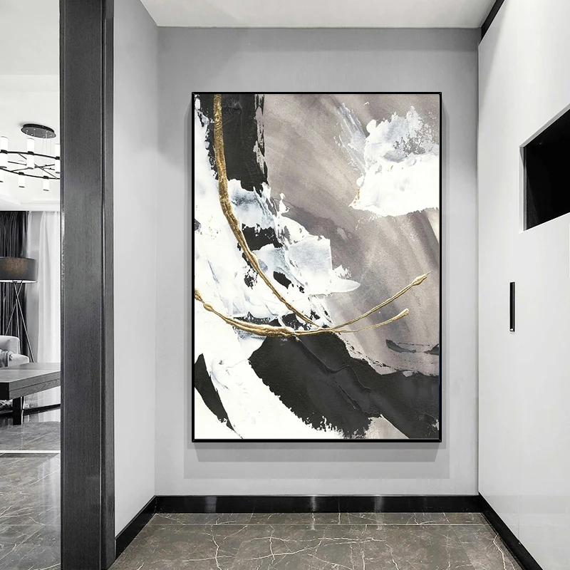 100% Handpainted Abstract Oil Painting On Canvas Textured Gold Black Gray Modern Wall Art Painting Frameless For Home Decor