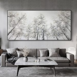 Modern Family Handmade Oil Painting Birch forest Wall Art Picture Living Room Home Decor On Canvas