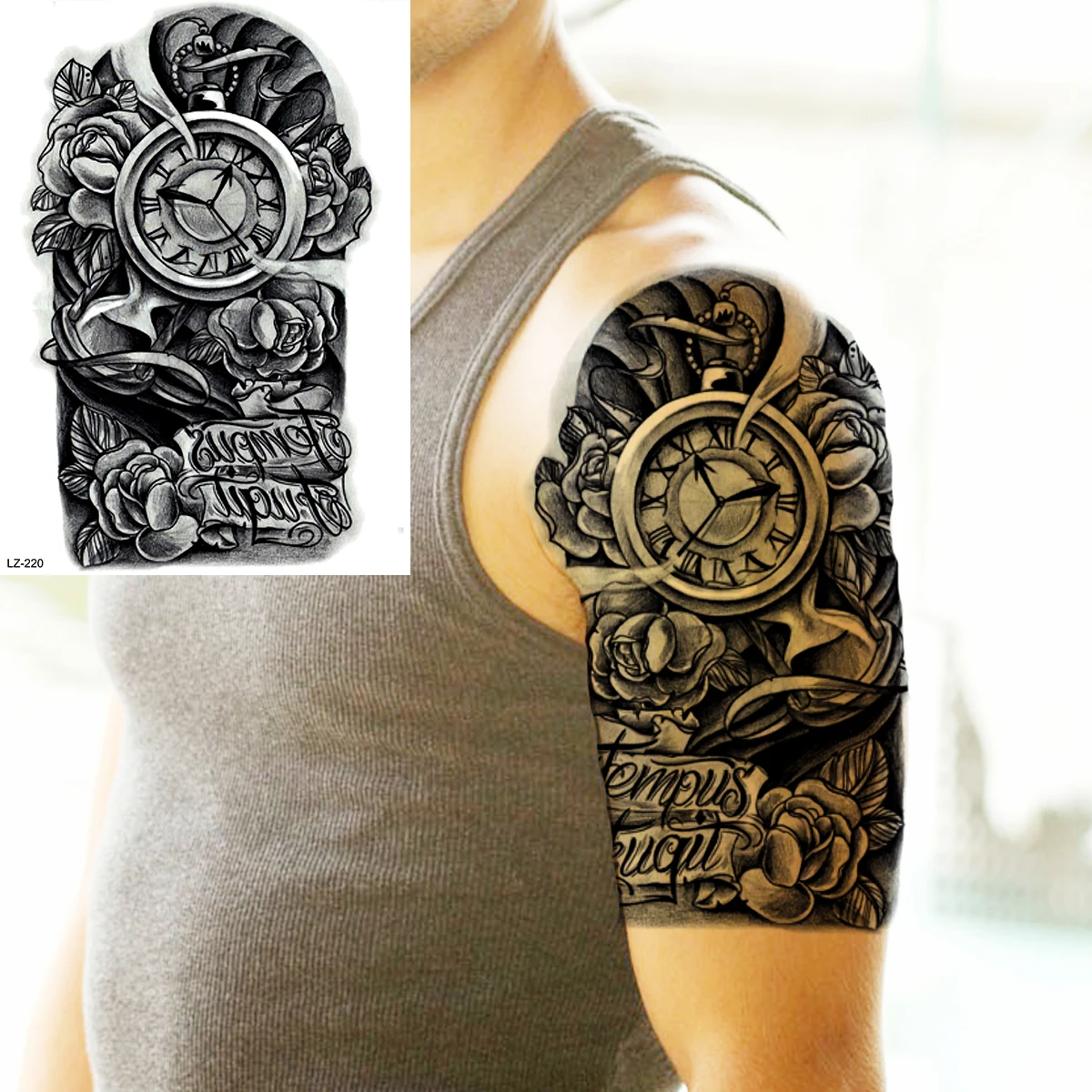Black Spartan Temporary Tattoos For Men Boys Lion Knight Wolf Skull Compass Tiger Fake Tattoo Sticker Arm Leg Tatoos Waterproof