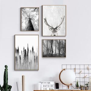 Be the first to review “Scandinavian Forest Deer Eagle Black White Landscape Canvas Poster Nordic Wall Art Print Minimalist Painting Living Room Picture”