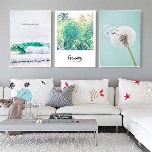 Ocean Landscape Canvas Poster Nordic Style Beach Plant Leaf Cuadros Decoracion Salon Wall Art Painting F Living Room Decor 5-05