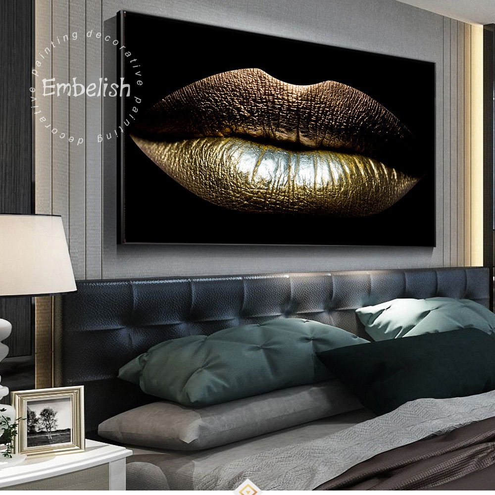 1 Pieces African Nude Woman Sexy Golden Lips Modern Home Decor Wall Art Pictures For Living Room HD Print Canvas Oil Paintings