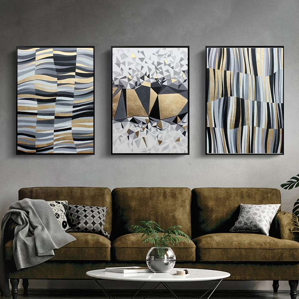 3 pcs Luxury Minimalist Gold Silver Grey Abstract HD Geometric Wall Art Painting Canvas Living Room Home Decoration Cuadros