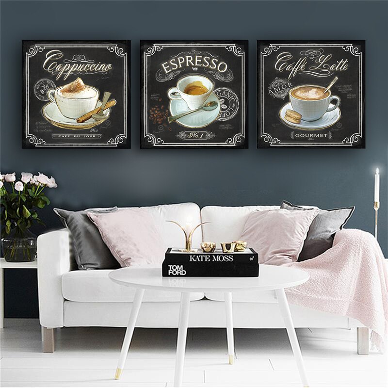3Pcs Kitchen Vintage Coffee Posters and Prints Wall Art Pictures Painting Wall Art for Living Room Home Decor (No Frame)