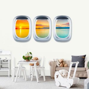 3pcs Landscape Wallpaper Airplane Wall PVC Stickers Decal Art Mural Window View Home Decoration Living Room Wallpaper