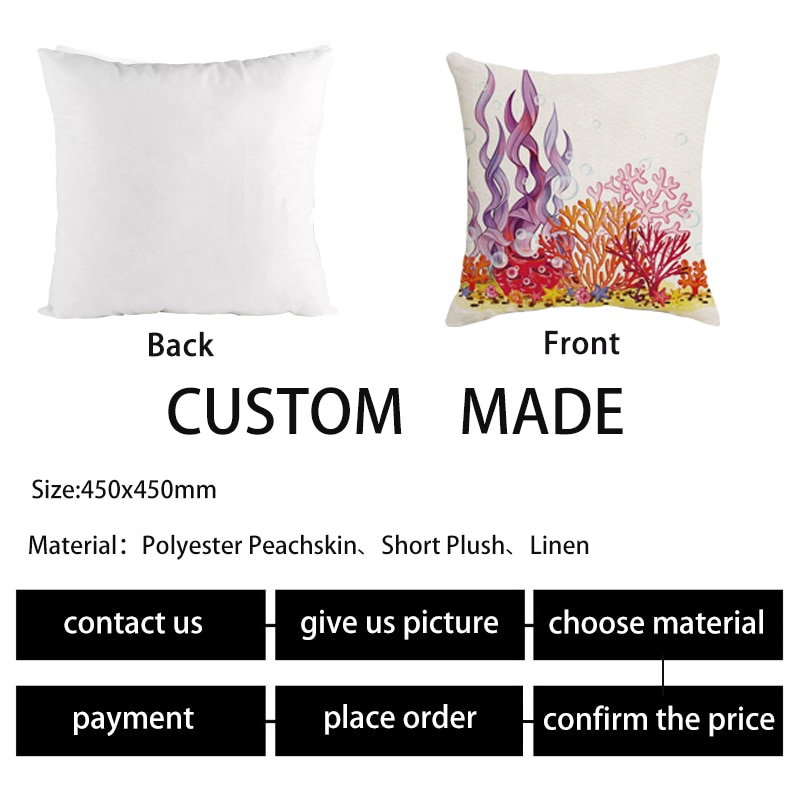Be the first to review “45x45cm Watercolor Coral Marine Life Cushion Cover Custom Fish Animal Plant Linen Pillow Cases Sofa Home Decoration Pillowslip”