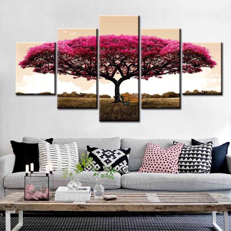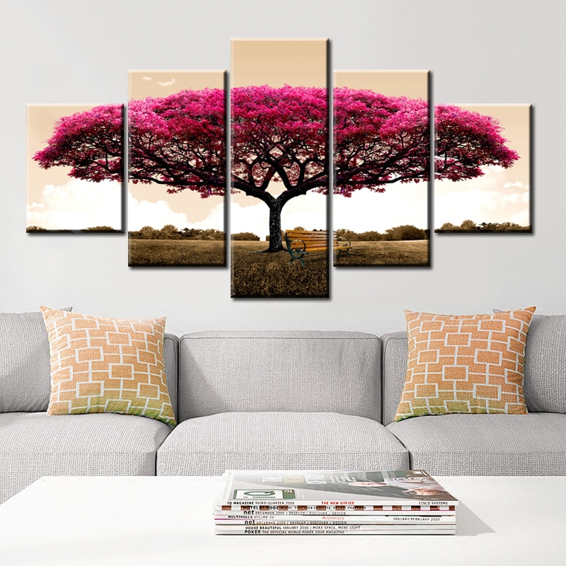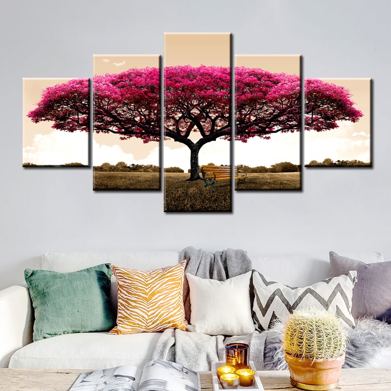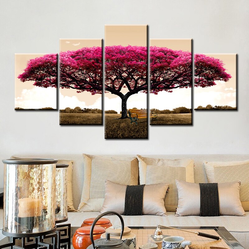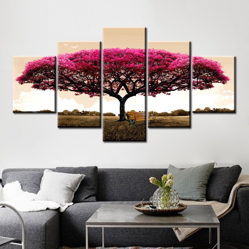 5 Panels Abstract Red Tree Oil Paintings Print On Canvas Posters And Prints Landscape Wall Art Pictures Home Wall Art Decor