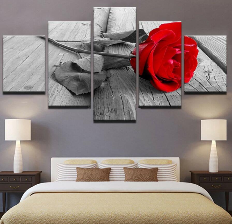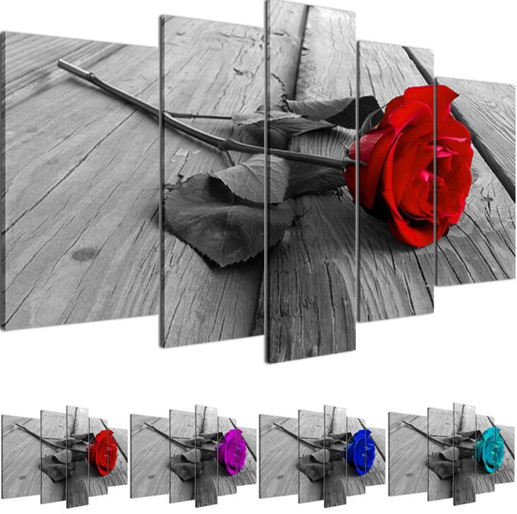 5 pcs Wall Paintings Vintage Beautiful Rose Painting Flower Pictures Frameless Poster for Living Room Wall Art Home Decor