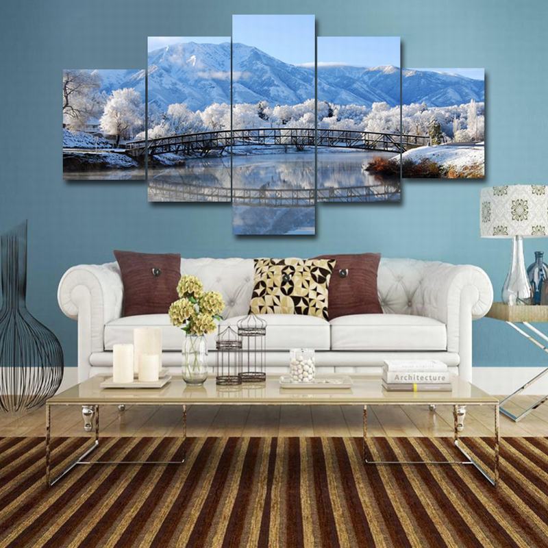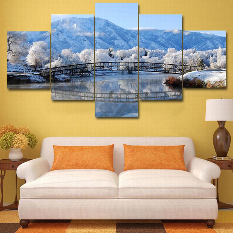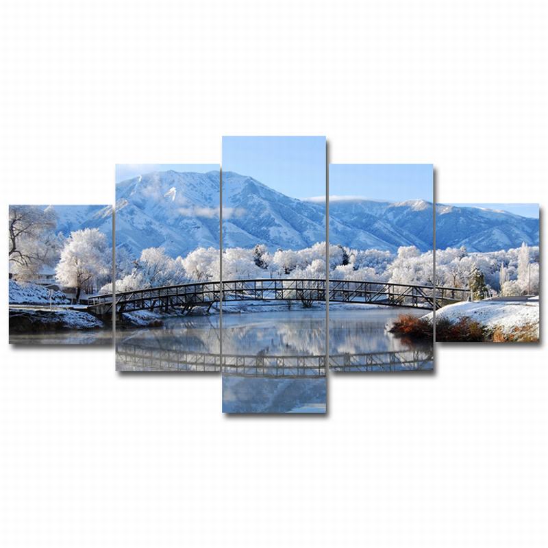 5 Piece Wall Art pictures Canvas poster prints Oil Painting Romantic Japanese Fuji mountain snow scene for Bedroom livingroom