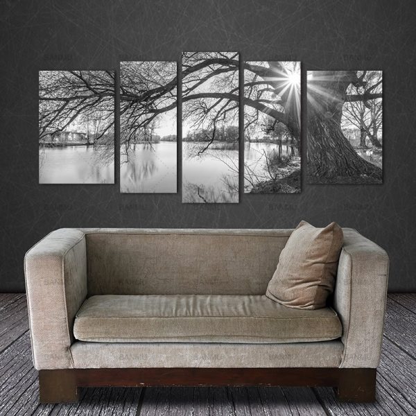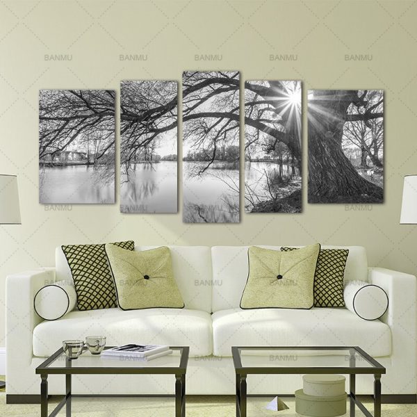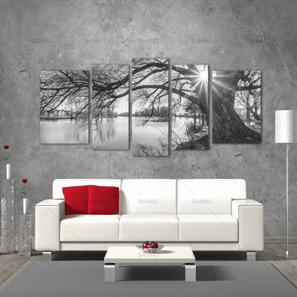 Be the first to review “5 Pieces Modern Wall Canvas Painting Black and White Tree Silhouette Sunset Landscape Art Decoration for living home Print”