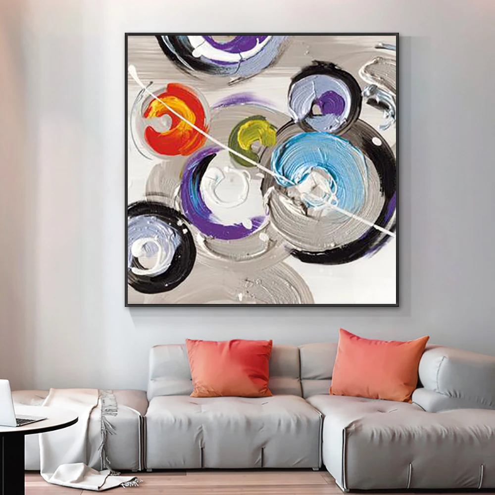 Abstract 100% Handmade Textured Circles Oil Painting Modern Canvas Art Decorative Thick Knife Paintings For Home Wall Decoration
