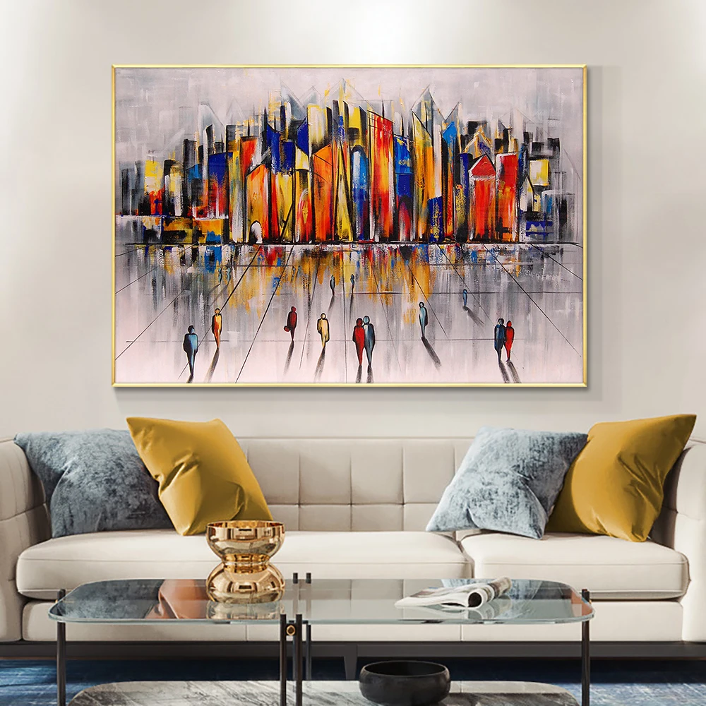Abstract Colorful Building Oil Painting On Canvas 100% Hand Painted Modern Wall Art Pictures For Living Room Home Decoration