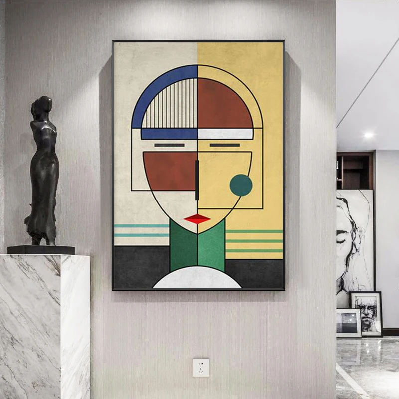 Abstract Figure Canvas Painting Splice Face Geometric Poster Prints Modern Wall Art Pictures for Living Room Bedroom Home Decor