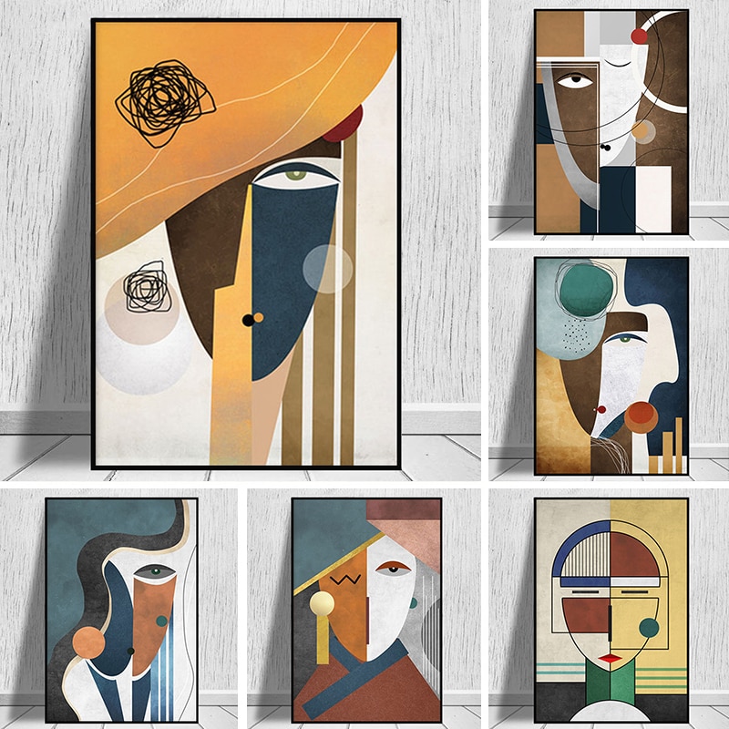 Abstract Figure Canvas Painting Splice Face Geometric Poster Prints Modern Wall Art Pictures for Living Room Bedroom Home Decor