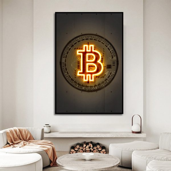 Abstract Gold Bitcoin Neon Prints Posters Wall Art Canvas Painting Wall Pictures For Modern Living Room Home Decor Frameless