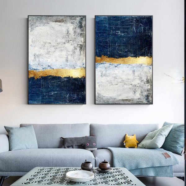 Be the first to review “Abstract Gold Foil Block Painting Blue Poster Print Modern Golden Wall Art Picture for Living Room Navy Decor Big Size Tableaux”