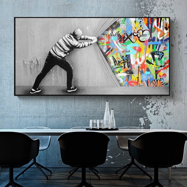 Be the first to review “Abstract Graffiti Behind The Curtain Street Art Oil Painting Canvas Posters and Print Cuadros Wall Art Picture for Living Room”