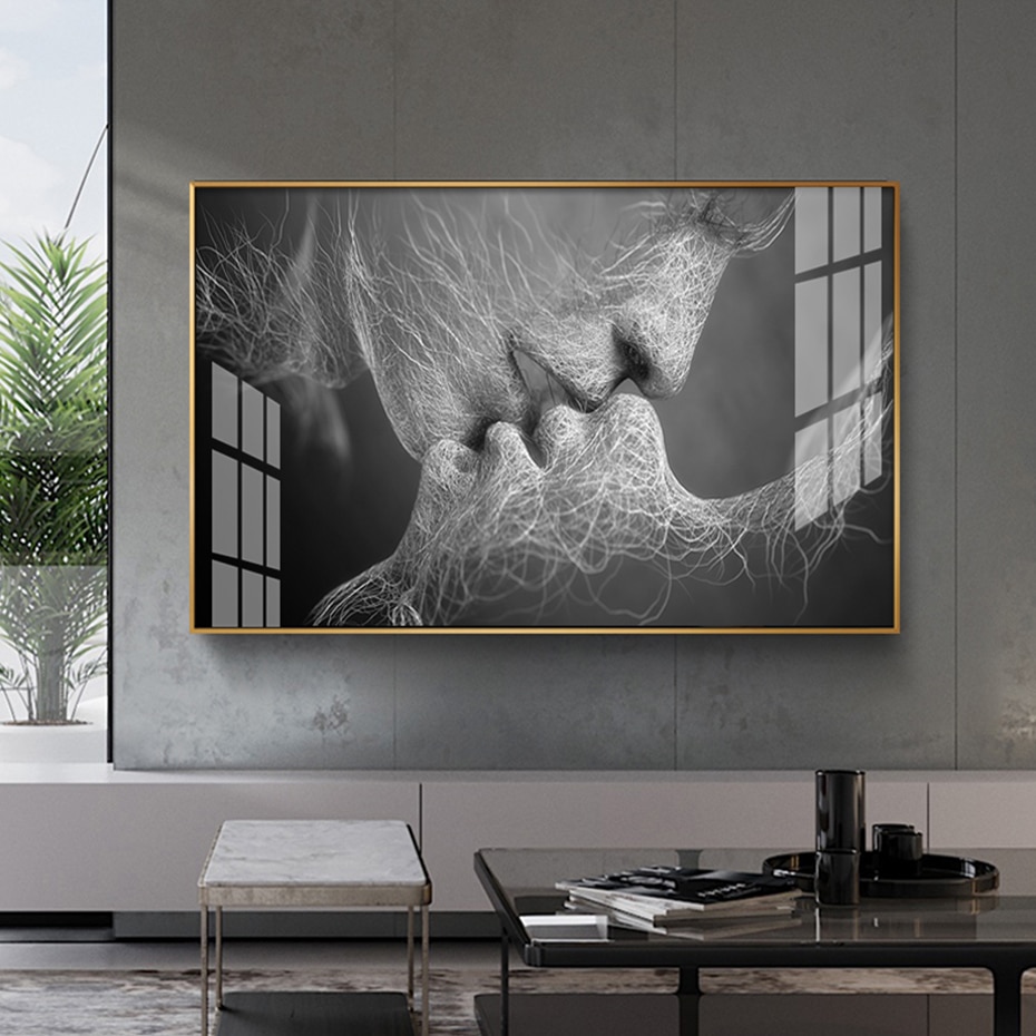 Abstract Kiss Love Poster Canvas Painting Black and White Wall Art Pictures Print Gallery Living Room Bedroom Home Decorations