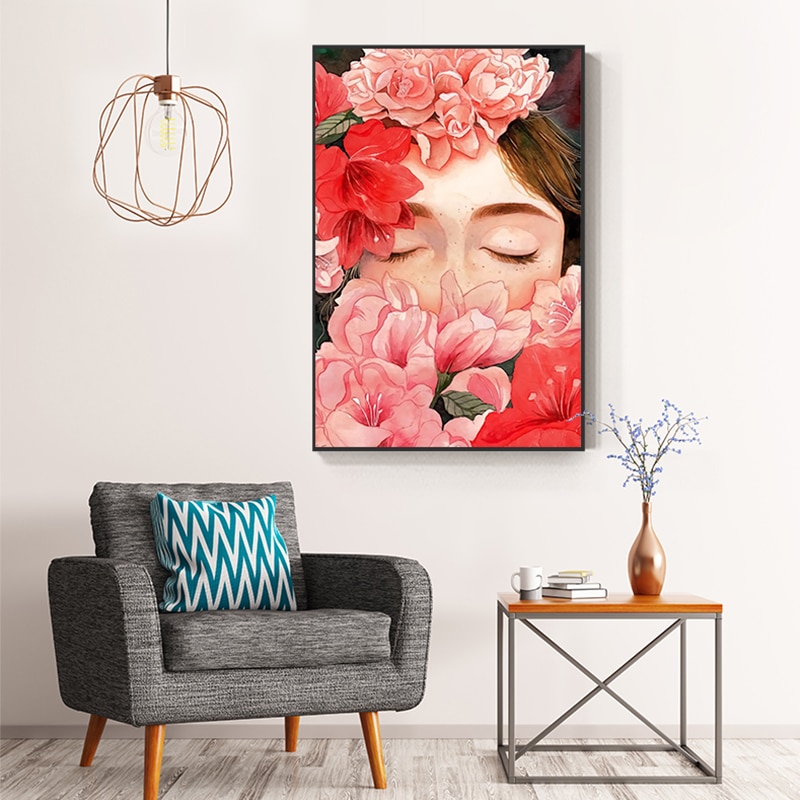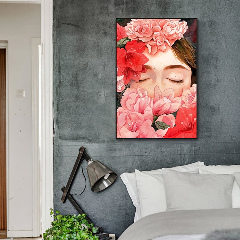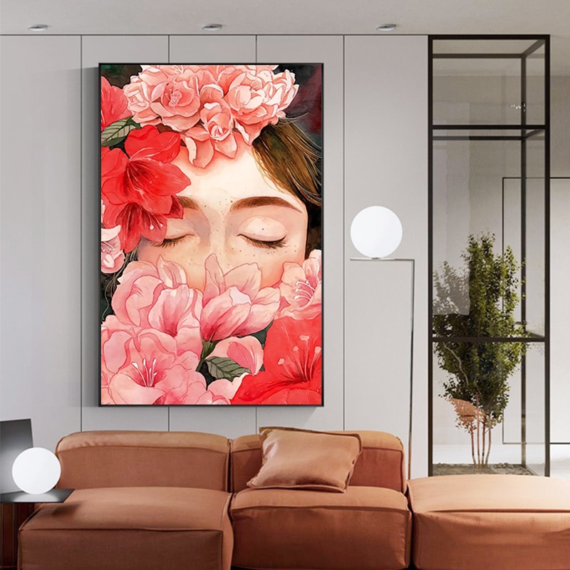 Abstract Pink Peony Girl Canvas Art Pink Flower Poster Print Modern Tableau Big Wall Art for Living Room Beauty Entrance Picture