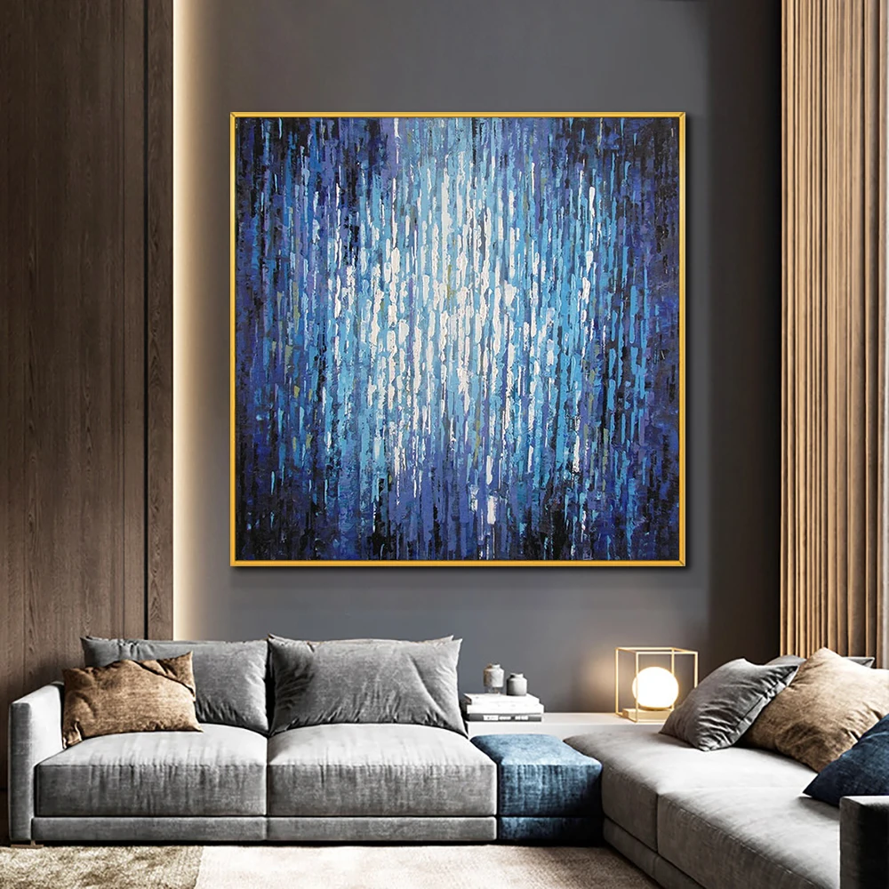 Abstract Purple Blue Oil Painting 100% Hand Painted On Canvas Wall Art Vintage Minimalist Poster Art For Modern Home Decor