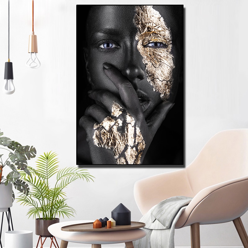 African Art Black and Gold Woman Canvas Painting Posters Prints Wall Art Scandinavian Decorative Pictures for Living Room Decor