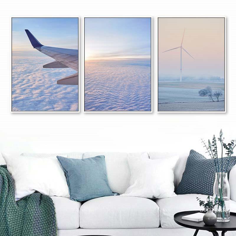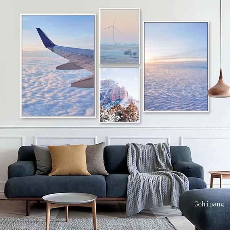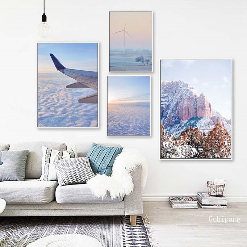 Airplane Cloud Landscape Wall Art Canvas Painting Scandinavian Snow Mountain Posters Prints Pictures for Living Room Home Decor