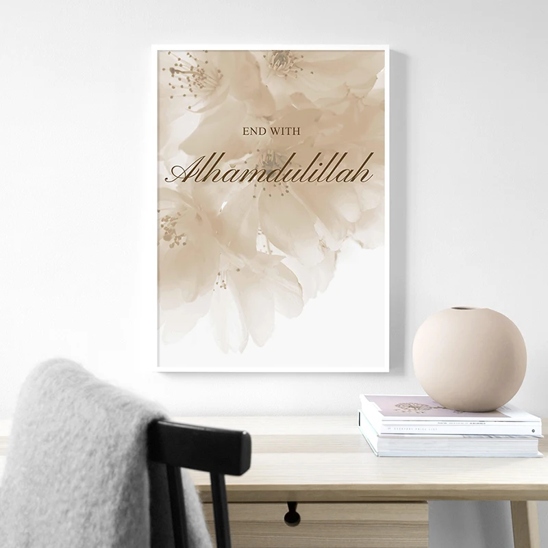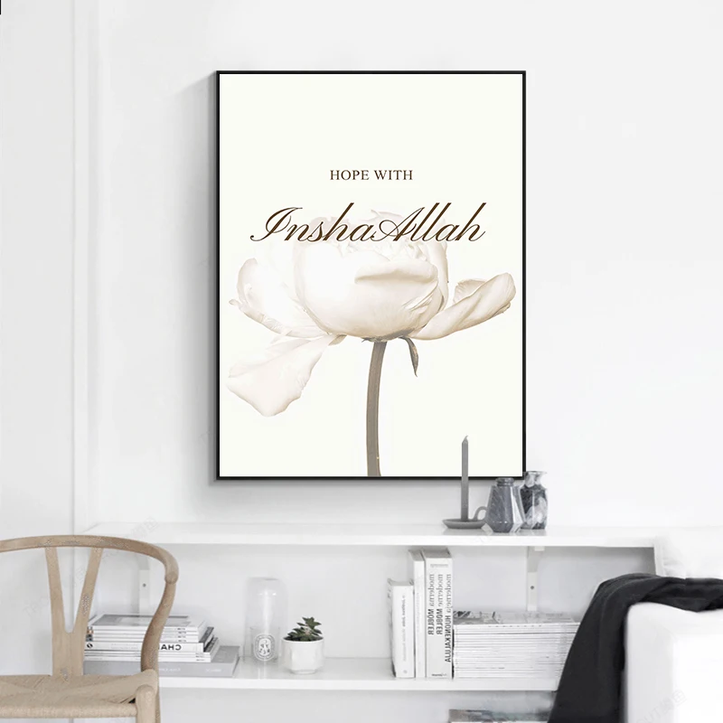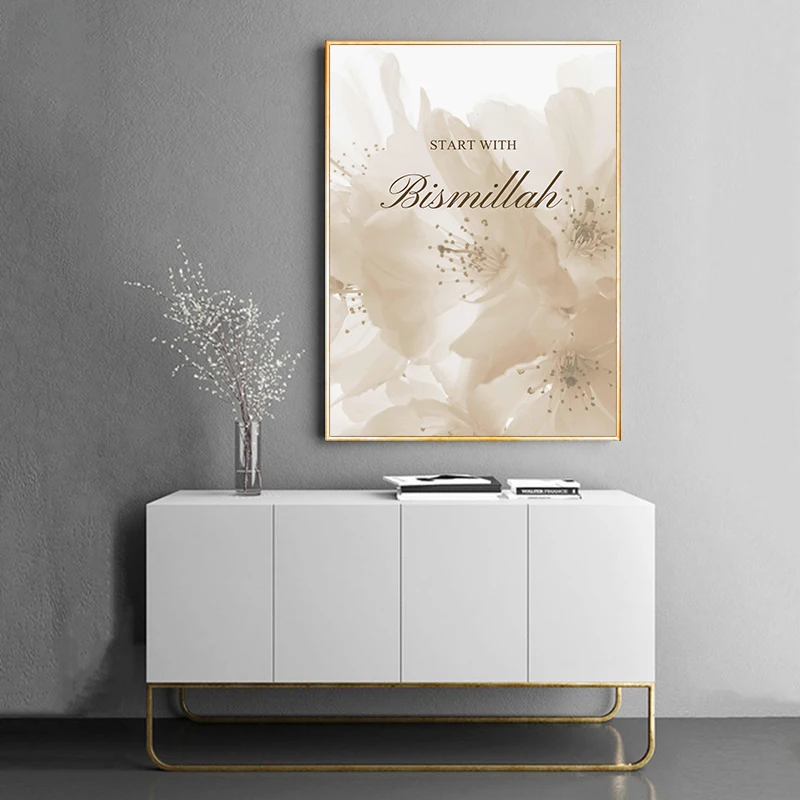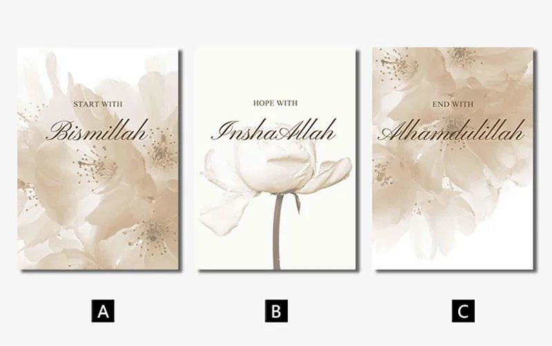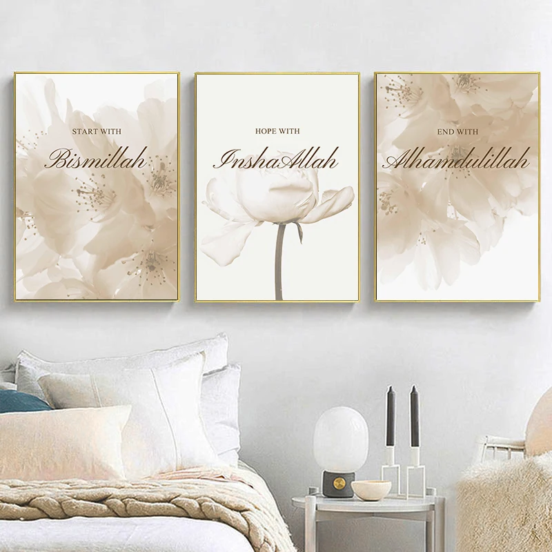 Allah Islamic Canvas Poster Flowers Quotes Wall Painting Arabic Calligraphy Art Print Muslim Living room Decoration Picture