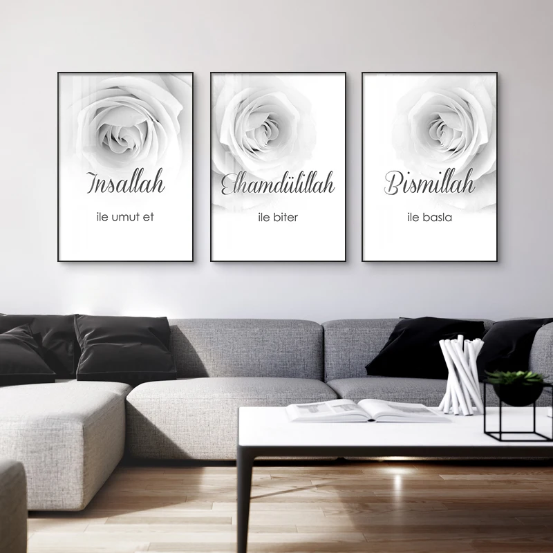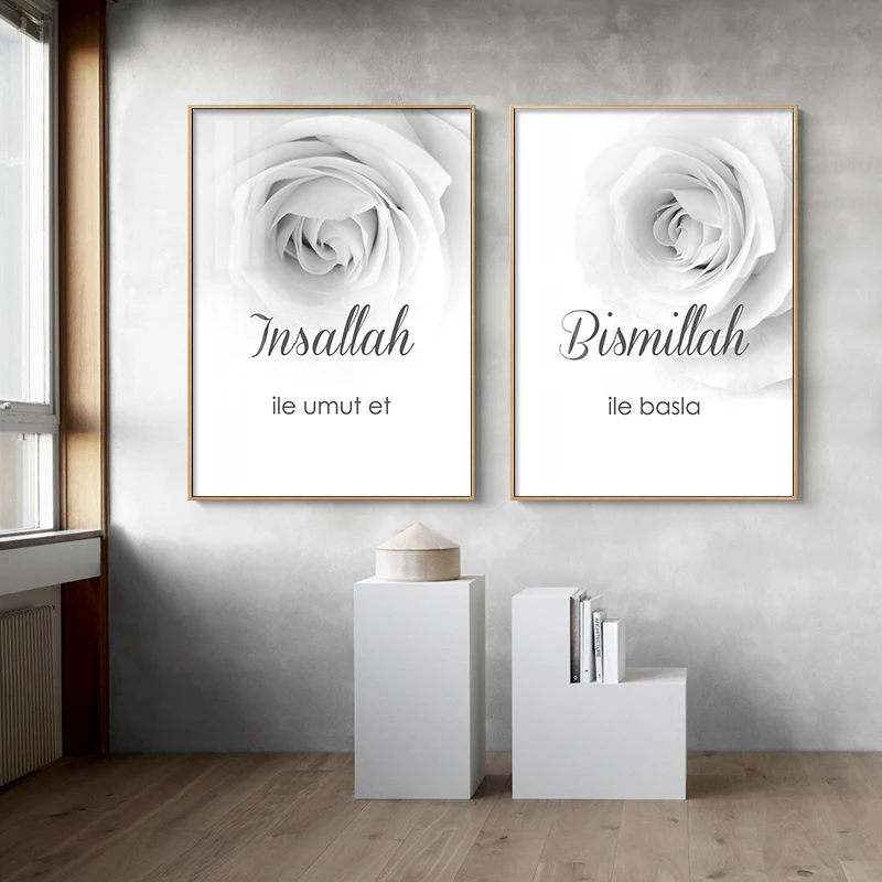 Be the first to review “Allah Islamic Wall Art Flowers Quotes Canvas Poster Arabic Black White Rose Print Muslim Painting Living Room Decoration Picture”