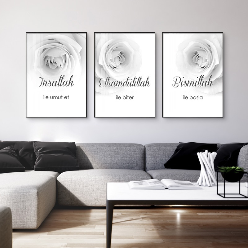 Be the first to review “Allah Islamic Wall Art Flowers Quotes Canvas Poster Arabic Black White Rose Print Muslim Painting Living Room Decoration Picture”