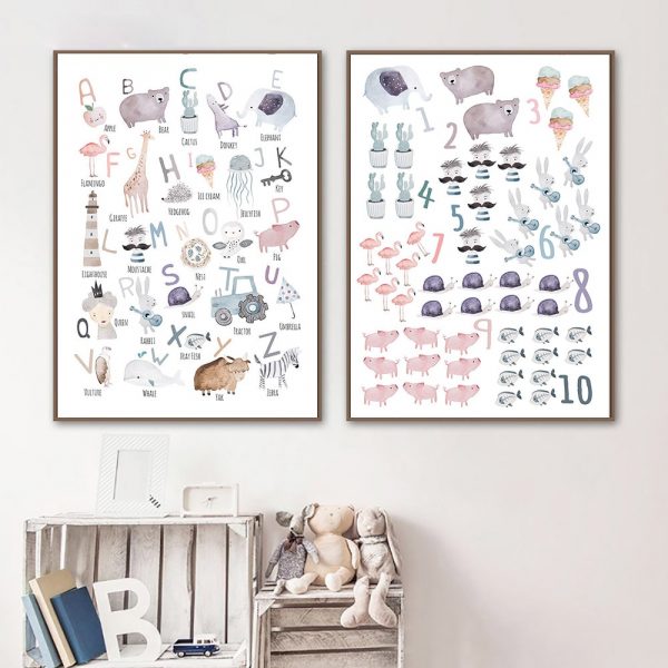 Be the first to review “Alphabet Poster Number Educational Canvas Painting Nursery Wall Art Prints Animals Illustration Learning Picture Kids Room Decor”