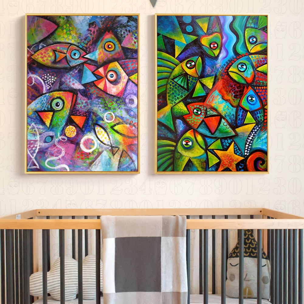 Animal Prints Painting Canvas Colorful Fish Wall Art Decor Prints Harvest Cartoon for Children Bedroom Home Office Decoration