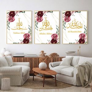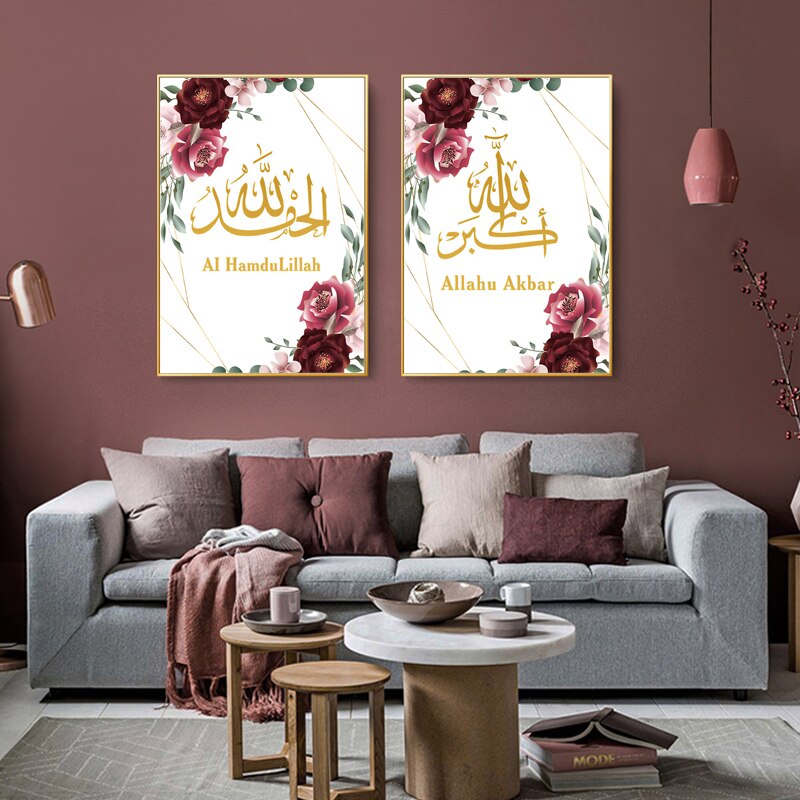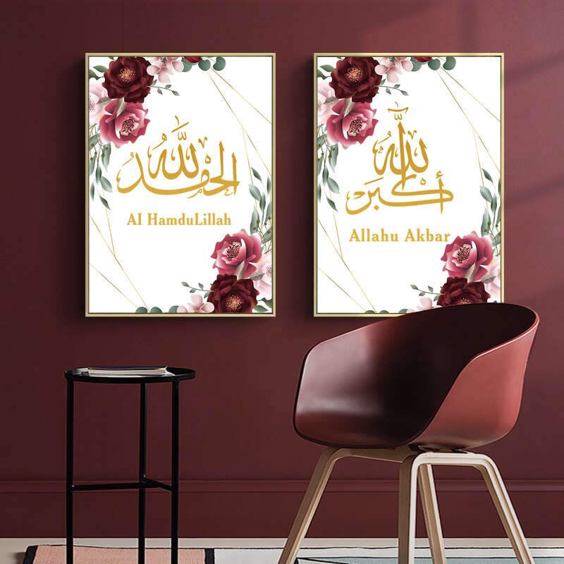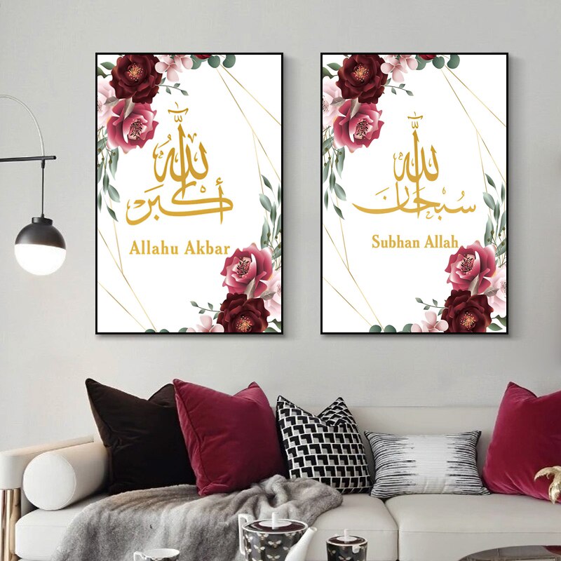 Be the first to review “Arabic Calligraphy Wall Posters And Prints Koran Islamic Wall Art Printed For Ramadan Decorative Red Flower Picture Art Canvas”