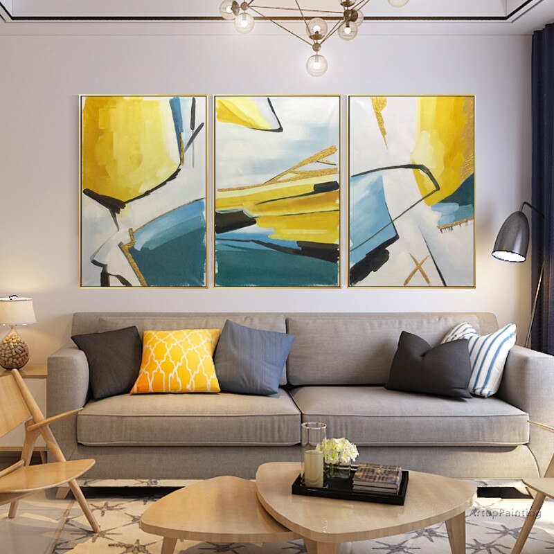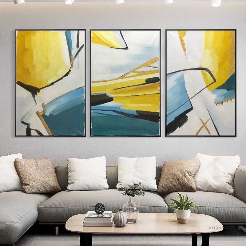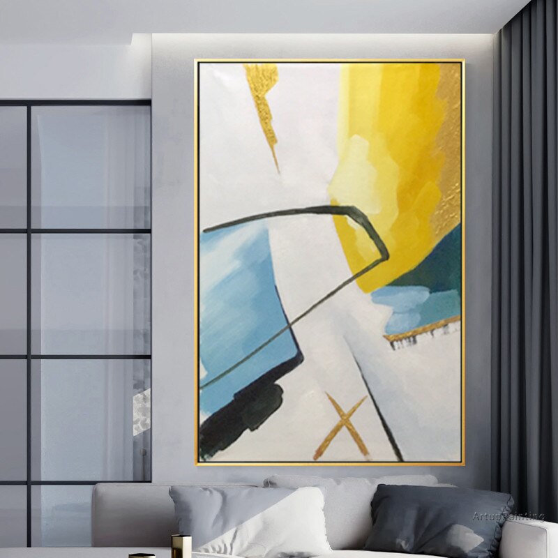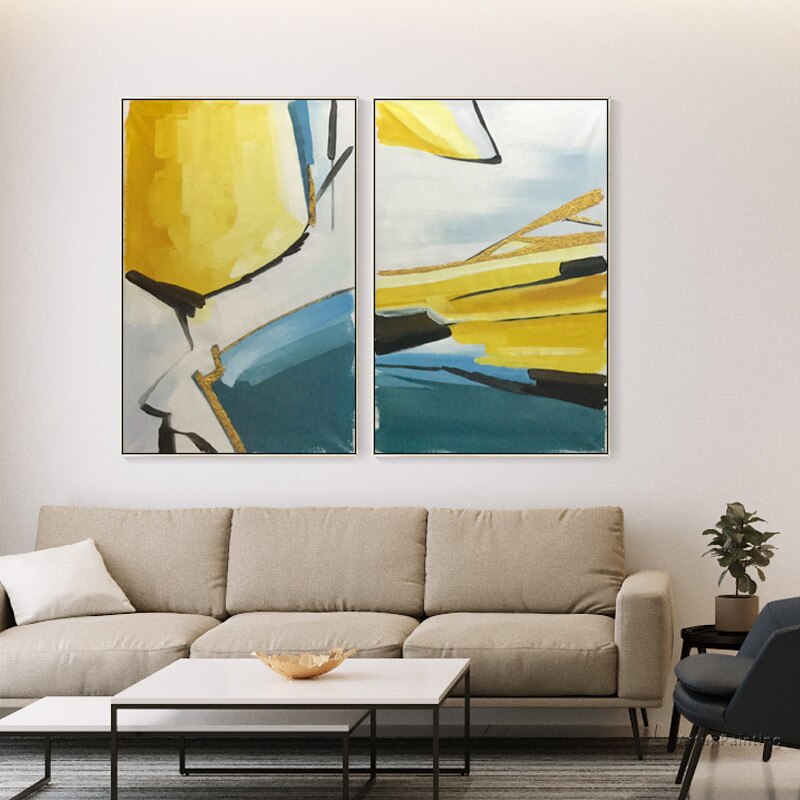 Artist hand painted canvas oil painting yellow wall art modern abstract acrylic painting for living room home office hotel decor