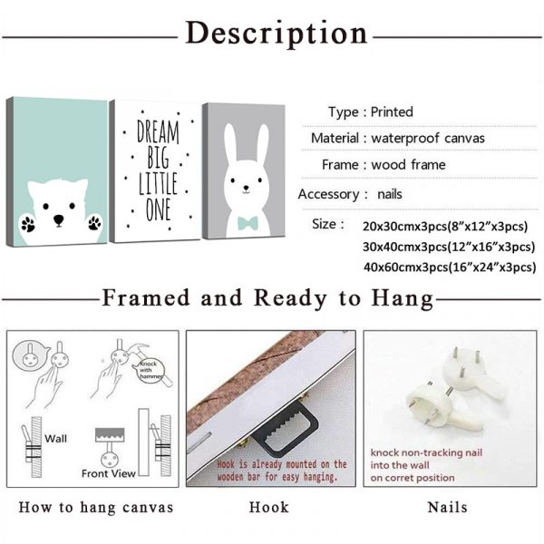 Be the first to review “Baby Nursery Quote Wall Art Canvas Poster Print Cartoon Rabbit Bear Painting Nordic Children Bedroom Decor Framed Ready To Hang”