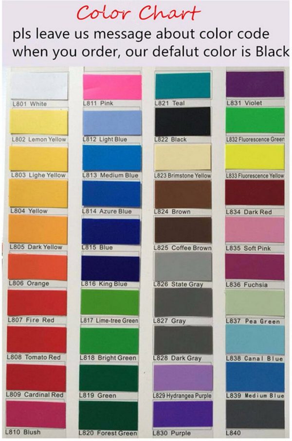 | Color | 822 Black, 813 Medium Blue, 801 White, 826 State Gray, 819 Green, 835 Soft Pink, 830 Purple, 807 Fire Red, 804 Yellow, Other Color Choose |