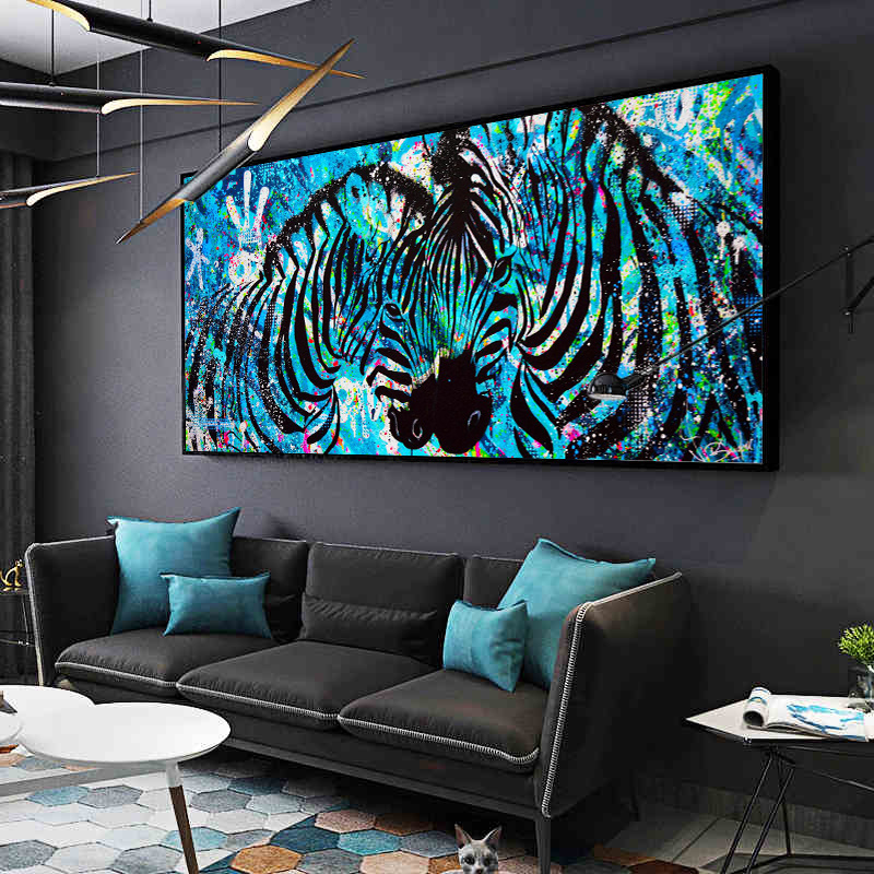 Be the first to review “Beautiful Lover Zebras Art Canvas Painting Blue Print Poster Abstract Animals Wall Art Picture Living Room Decoration No Frame”