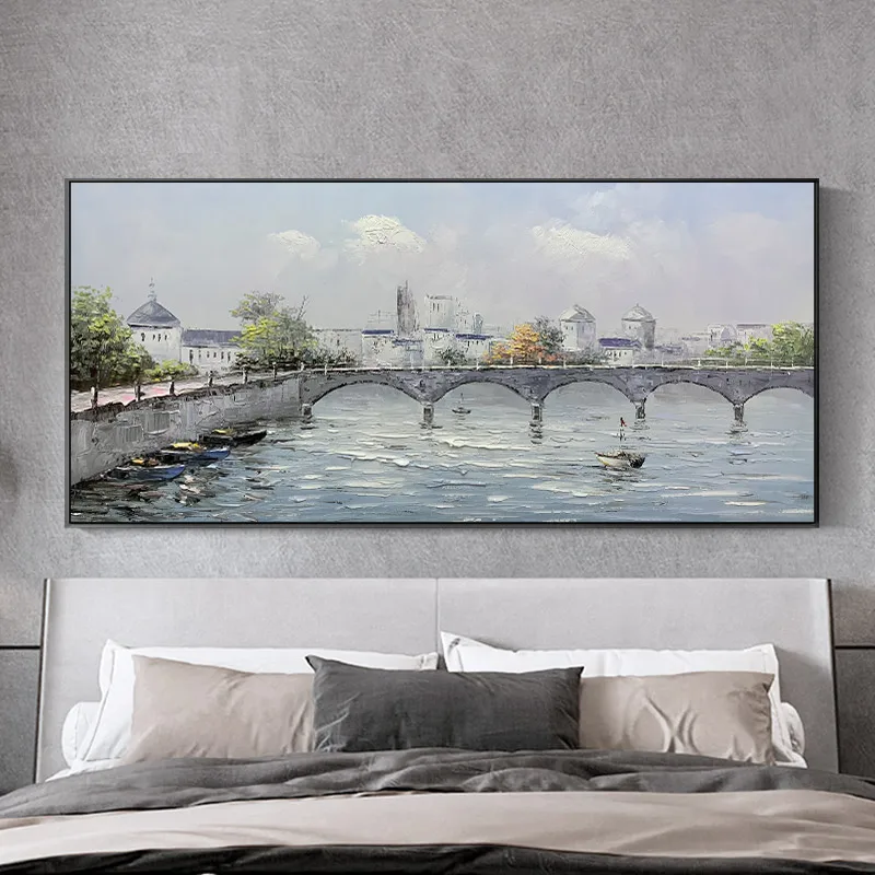 Beautiful Mediterranean City Canvas Painting Handmade Abstract Oil Painting For Living Room Decoration Gift