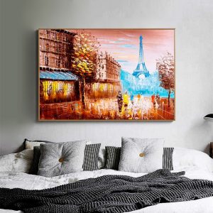 Big Size Print Romantic City Couple Paris Eiffel Tower Landscape Abstract Oil Painting on Canvas Wall Art Living Room Home Decor