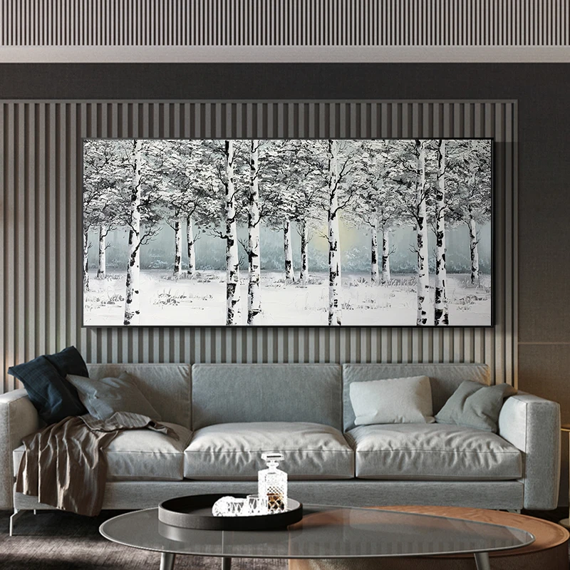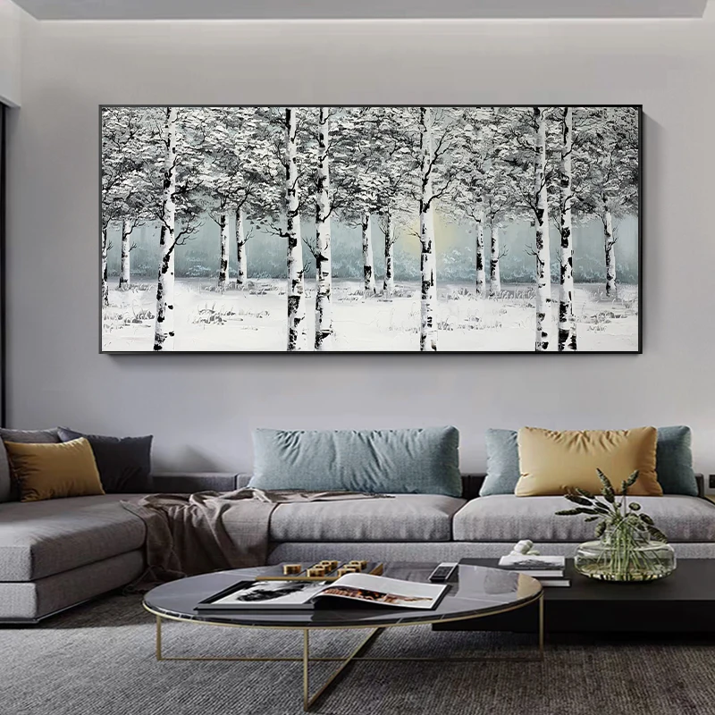 Birch Forest Oil Painting Wall Art Hand Painted ModernWall Decorative Canvas Art Picture for living room Home Decor